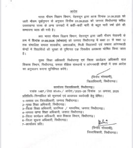 पिथौरागढ़ : भारत मौसम विज्ञान विभाग द्वारा जारी अलर्ट के दृष्टिगत विद्यार्थियों की सुरक्षा को प्राथमिकता देते हुए जिलाधिकारी विनोद गोस्वामी ने जनपद के समस्त शासकीय, अशासकीय एवं निजी विद्यालयों (कक्षा नर्सरी से कक्षा 12 तक) तथा आंगनबाड़ी केन्द्रों में दिनांक 1 सितम्बर 2025 को एक दिन का अवकाश घोषित किया गया है।